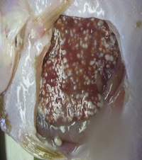 Yellowtail liver with Ichthyophonus granulomas. Photo courtesy of Dr. Roxanna Smolowitz