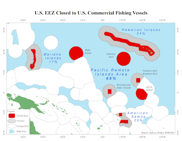 In the months since the June 17 announcement to expand the size of the PRIMNM tenfold, the WPRFMC; the governors of American Samoa, Guam and the Commonwealth of the Northern Mariana Islands (CNMI); the American Samoa and CNMI legislatures; U.S. longline and purse-seine fishermen; tuna cannery representatives; and marine science experts have expressed deep concerns regarding the shortcomings of the proposed expansion. According to those speaking out in opposition, the initial plan for expansion disregarded essential local fishing industries and provided negligible gains for conservation. The revised plan will expand the monument to include the 200-mile Exclusive Economic Zones (EEZ) surrounding Johnston Atoll, Jarvis Island and Wake Island, but will not expand the existing 50-mile prohibitions on fishing around Howland and Baker Islands and Palmyra Atoll and Kingman Reef.